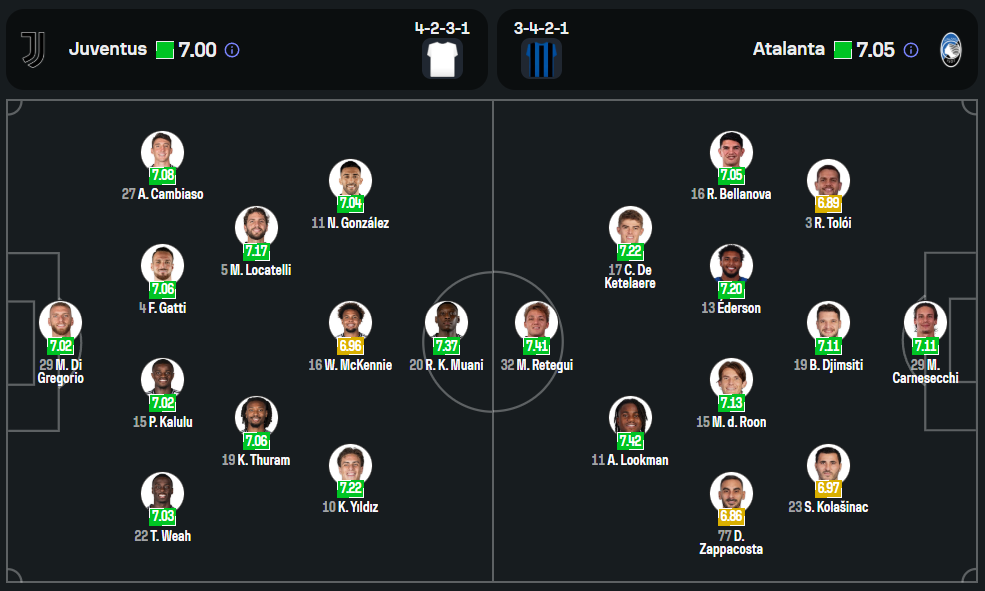 มิเคเล่ ดิ เกรกอริโอ้ – ทิโมธี่ เวอาห์, ปิแอร์ กาลูลู, เฟเดริโก้ กัตติ, อันเดรีย คัมเบียโซ่ – มานูเอล โลคาเตลลี่, เคเฟรน ตูราม – นิโกลัส กอนซาเลซ, เทิร์ก โคพไมเนอร์ส, เคนาน ยิลดิซ – ร็องดัล โคโล่ มูอานี่