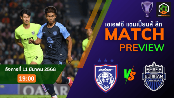 บุรีรัมย์ ยูไนเต็ด “ปราสาทสายฟ้า” ยังคงรักษาสถิติไร้พ่ายได้อย่างต่อเนื่องใน 5 เกมหลังสุด แต่ฟอร์มโดยรวมเริ่มมีปัญหา โดยเฉพาะเกมรุกที่ฝืดสนิท ยิงประตูไม่ได้ใน 2 นัดล่าสุด เกมเยือนของบุรีรัมย์ในรายการนี้ถือว่าทำได้ดี แต่เมื่อเจอคู่แข่งที่แข็งแกร่งอย่าง ยะโฮร์ ก็อาจจะเป็นงานยาก