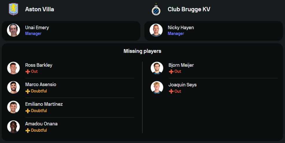 ทีมเยือนกำลังเผชิญปัญหาครั้งใหญ่ หลังพ่ายให้กับ แอสตัน วิลล่า 1-3 ในเกมเลกแรก แถมฟอร์มโดยรวมยังค่อนข้างผันผวน พวกเขาชนะแค่ 2 จาก 5 นัดหลังสุด และมีปัญหาเกมรับที่ต้องเร่งแก้ไข โดยเฉพาะการเสียประตูง่ายๆ อย่างไรก็ตาม คลับ บรูช ยังคงมีความอันตรายในเกมสวนกลับ และอาจสร้างเซอร์ไพรส์ได้หากแนวรับสามารถต้านทานพลังบุกของเจ้าบ้านได้
