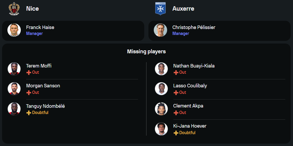 นีซ เจ้าบ้านเพิ่งพลาดท่าแพ้ โอลิมปิก ลียง 0-2 ในนัดล่าสุด ถือเป็นความพ่ายแพ้ที่ทำให้ฟอร์มที่ยอดเยี่ยมก่อนหน้านี้สะดุดลงไป อย่างไรก็ตามพวกเขายังคงเป็นทีมที่เล่นในบ้านได้แข็งแกร่ง ชนะ 8 จาก 12 นัดหลังสุดที่สนามเหย้า เกมรุกยังคงหวังผลได้ โดยเฉพาะ เอวานน์ เกสซานด์ ที่เป็นตัวหลักของทีมในตอนนี้