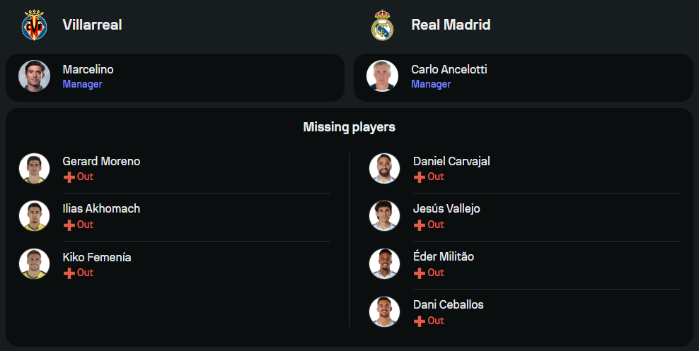 คาร์โล อันเชล็อตติ จะไม่มี ดานี่ การ์บาฆาล, เอแดร์ มิลิเตา และ ดานี่ เซบายอส ที่ยังบาดเจ็บ แต่ขุมกำลังที่เหลือยังถือว่าแกร่งทั่วแผ่น คาดว่าจะใช้ระบบ 4-2-3-1 เหมือนเดิม โดยมี คีเลียน เอ็มบัปเป้ เป็นหน้าเป้า พร้อมตัวสนับสนุนอย่าง วินิซิอุส จูเนียร์, จู๊ด เบลลิงแฮม และ โรดริโก้ ขณะที่แดนกลางอาจมีการเปลี่ยนแปลงให้ เอดูอาร์โด้ คามาวิงก้า ลงเล่นคู่กับ ออเรเลียง ชูอาเมนี่ เพื่อเน้นการคุมเกมที่แน่นขึ้น