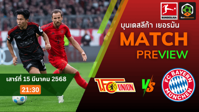 ศึกบุนเดสลีกาสุดเดือดกลับมาอีกครั้ง วันเสาร์ที่ 15 มีนาคม 2568 เวลา 21.30 น. กับเกมที่มีผลกระทบทั้งโซนหัวตารางและท้ายตาราง เมื่อ ยูเนี่ยน เบอร์ลิน ทีมอันดับ 14 เปิดบ้านต้อนรับ บาเยิร์น มิวนิค จ่าฝูงที่ต้องการขยับแต้มหนีคู่แข่งเพื่อรักษาความเป็นผู้นำของลีก ตารางบอลวันนี้ นัดนี้มีความหมายอย่างยิ่งสำหรับทั้งสองทีม โดยเฉพาะเจ้าถิ่นที่ต้องดิ้นรนหนีตกชั้น ในขณะที่ทีมเยือนกำลังอยู่ในช่วงเข้าฟอร์มพร้อมเดินหน้าคว้าชัยทุกเกมที่เหลือ