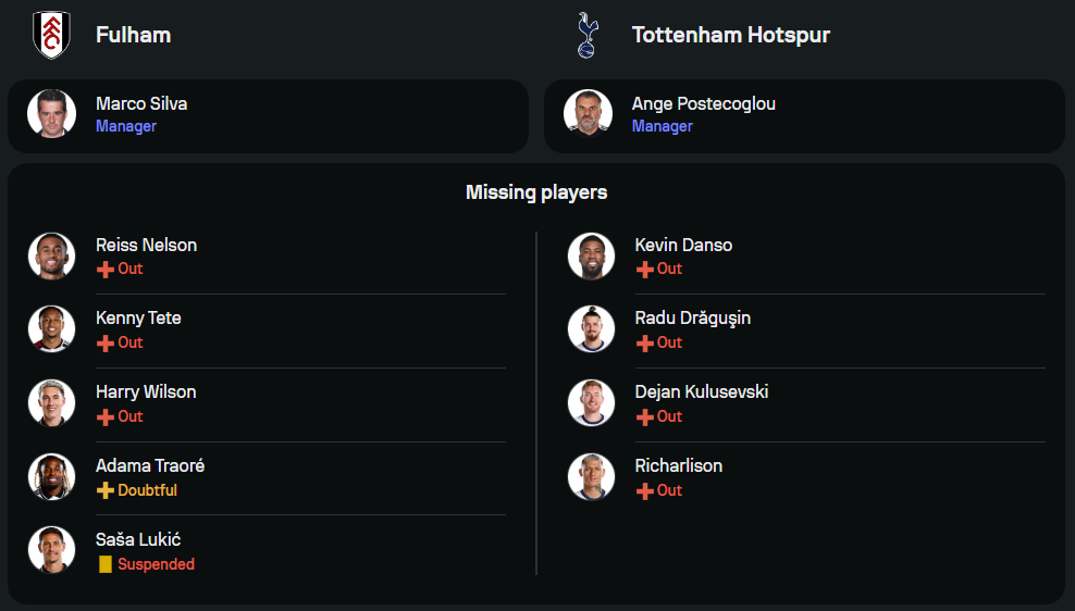 ลูกทีมของ มาร์โก้ ซิลวา กำลังเจอปัญหาผู้เล่นบาดเจ็บและติดโทษแบน โดย ซาซ่า ลูคิช กองกลางตัวหลักติดโทษแบน ขณะที่ ไรสส์ เนลสัน, เคนนี่ เตเต้ และ แฮร์รี่ วิลสัน ยังไม่หายจากอาการบาดเจ็บ คาดว่าพวกเขาจะมาในระบบ 4-2-3-1 โดยมี ราอูล ฆิเมเนซ เป็นตัวความหวังในแดนหน้า