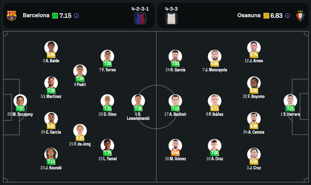 ฝั่งเจ้าบ้าน บาร์เซโลน่า ภายใต้การคุมทัพของ ฮันซี่ ฟลิค ยังคงร้อนแรงอย่างต่อเนื่อง แม้จะมีตัวเจ็บพอสมควร อาทิ มาร์ค-อันเดร แทร์ สเตเก้น, อันเดรส คริสเตนเซ่น, มาร์ก กาซาโด, มาร์ก เบอร์นัล รวมถึง ราฟินญ่า และ โรนัลด์ อาเราโฆ ที่ยังไม่กลับมาจากภารกิจทีมชาติ แถมยังมี เปา กูบาร์ซี่ ต้องรอลุ้นความฟิตด้วยอีกคน อย่างไรก็ตาม ขุมกำลังหลักอย่าง โรเบิร์ต เลวานดอฟสกี้, ดานี่ โอลโม่, ลามีน ยามาล และ เปดรี้ พร้อมลงสนามเต็มสูบ โดยทีมจะมาในแผน 4-2-3-1 ที่กำลังเข้าขาระเบิดฟอร์มได้ทุกเกม