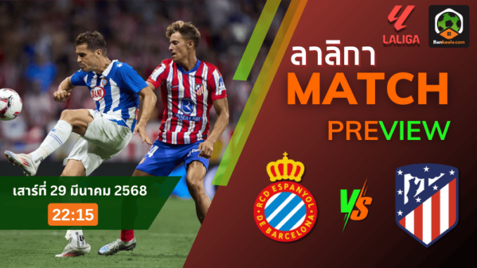 ในคืนวันเสาร์ที่ 29 มีนาคม 2568 นี้ แฟนบอลลาลิกาต้องไม่พลาดอีกหนึ่งเกมระดับอารมณ์เดือด เมื่อ เอสปันญ่อล เปิดรังโคร์เนย่า เอล ปราต ต้อนรับการมาเยือนของ แอตเลติโก้ มาดริด ในศึกฟุตบอล ลาลิกา สเปน คู่นี้ลงสนามในเวลา 22.15 น. ตามเวลาไทย ถือเป็นอีกแมตช์ที่น่าจับตาไม่แพ้คู่ใดของ ตารางบอลวันนี้ ด้วยฟอร์มการเล่นที่แกว่งของทั้งสองฝ่ายแต่ศักดิ์ศรียังคงเต็มเปี่ยม ความมันส์ในสนามรออยู่ข้างหน้าอย่างแน่นอน!
