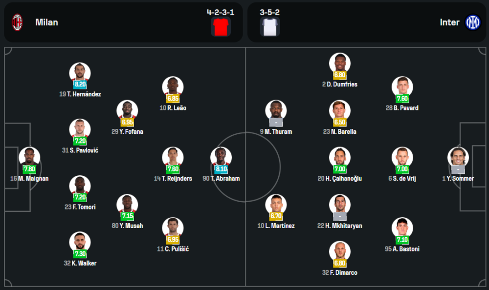 เอซี มิลาน ของกุนซือแซร์โจ้ คอนไซเซา มีข่าวดีในเกมนี้คือการคัมแบ็คของ อเลสซานโดร ฟลอเรนซี ที่หายเจ็บกลับมาได้ทันเวลา แม้จะต้องขาด รูเบน ลอฟตัส-ชีค ที่ต้องเข้ารับการผ่าตัด รวมถึง เอเมอร์สัน รอยัล ที่ยังไม่หายดี และ มาลิก เธียว ที่ป่วย ส่วน ยูนุส มูซาห์ จะกลับมาลงเล่นได้หลังพ้นโทษแบน คาดว่าจะใช้แผน 4-2-3-1 โดยมีสามประสานเกมรุกอย่าง คริสเตียน พูลิซิช, ทิยานี่ ไรย์นเดอร์ส และ ราฟาเอล เลเอา ทำเกมสนับสนุน แท็มมี่ อบราฮัม หัวหอกฟอร์มแรงที่ได้รับคะแนนสูงสุดจากเกมก่อนถึง 8.10