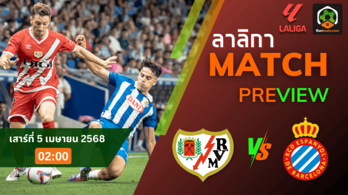 ในค่ำคืนที่ศึก ลาลีกา สเปน ระอุอีกครั้ง “ราโย่ บาเยกาโน่” พร้อมเปิดสนาม เอสตาดิโอ เด บาเญกาส รับมือ “เอสปันญ่อล” ในเกมสุดเข้มข้นที่มีมากกว่า 3 แต้มเป็นเดิมพัน เพราะสถานการณ์ของทั้งคู่ยังล่อแหลมต่อการหลุดจากโซนปลอดภัย ตารางบอลวันนี้ จึงต้องจับตามองเกมนี้เป็นพิเศษ ไม่ใช่แค่เรื่องของคะแนน แต่เป็นศึกแห่งศักดิ์ศรีของสองขุนพลที่กำลังไล่ล่าความอยู่รอด