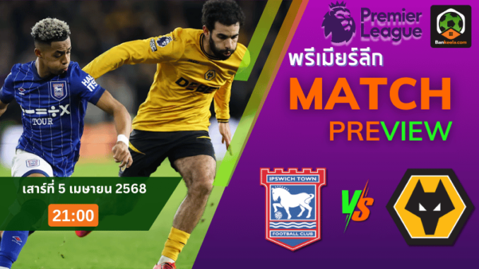ในศึกพรีเมียร์ลีก อังกฤษ ค่ำคืนวันเสาร์ที่ 5 เมษายนนี้ แฟนบอลเตรียมระทึกกับศึกหนีตายที่เดือดไม่แพ้เกมลุ้นแชมป์ เมื่อ อิปสวิช ทาวน์ ทีมบ๊วยที่กำลังดิ้นเฮือกสุดท้าย เตรียมเปิดรังรับการมาเยือนของ วูล์ฟแฮมป์ตัน ทีมกลางตารางที่ยังมีภารกิจต้องเคลียร์เพื่อหนีการลุ้นท้ายตาราง เกมนี้จะระเบิดความมันส์ในเวลา 21.00 น. ตามเวลาประเทศไทย และถือเป็นอีกหนึ่งคู่ที่แฟนๆ คอ ตารางบอลวันนี้ ไม่ควรพลาดด้วยประการทั้งปวง