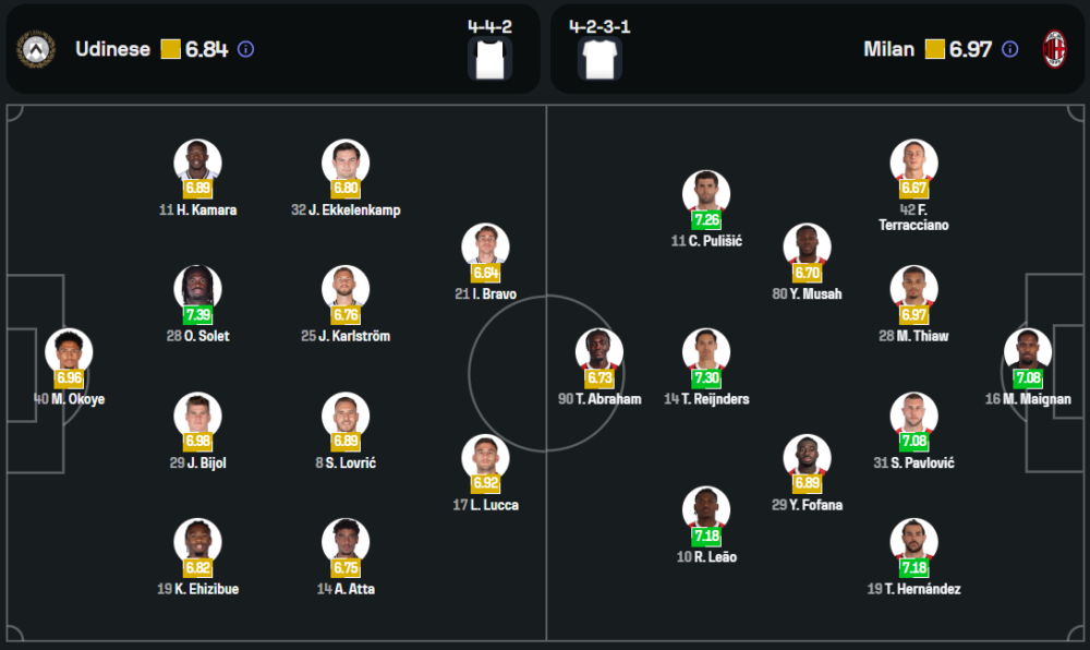 แม้ชื่อชั้นและประวัติศาสตร์ของทีมจะต่างกัน แต่หากย้อนดูการพบกันของทั้งสองทีมในช่วงหลังจะพบว่า อูดิเนเซ่ มักทำผลงานได้ดีเวลาเจอกับ เอซี มิลาน โดย 5 นัดหลังสุดที่เจอกัน ต่างฝ่ายต่างเอาชนะกันได้คนละ 2 ครั้ง และเสมอกันอีก 1 นัด ถือว่าใกล้เคียงกันพอสมควร โดยเฉพาะฤดูกาลที่แล้วที่ทั้งสองฝ่ายผลัดกันแพ้ชนะตลอด หากมองในมุม ทีเด็ดบอล ถือว่าเกมนี้มีความสูสีสูงและอาจตัดสินกันด้วยรายละเอียดเล็กๆ