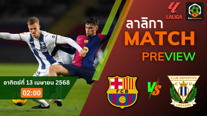 ดูบอลสดลาลิกา 2025 ถ่ายทอดสด เลกาเนส พบ บาร์เซโลน่า 12/4/68 – บ้านกีฬา