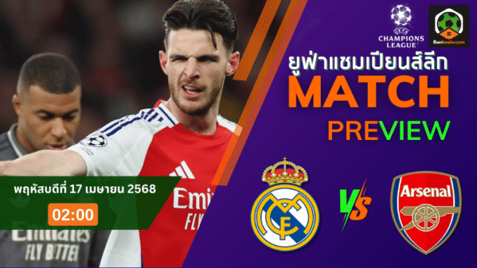 วิเคราะห์บอลยูฟ่าแชมเปียนส์ลีก 2025 ระหว่าง เรอัล มาดริด พบ อาร์เซนอล 16/4/68