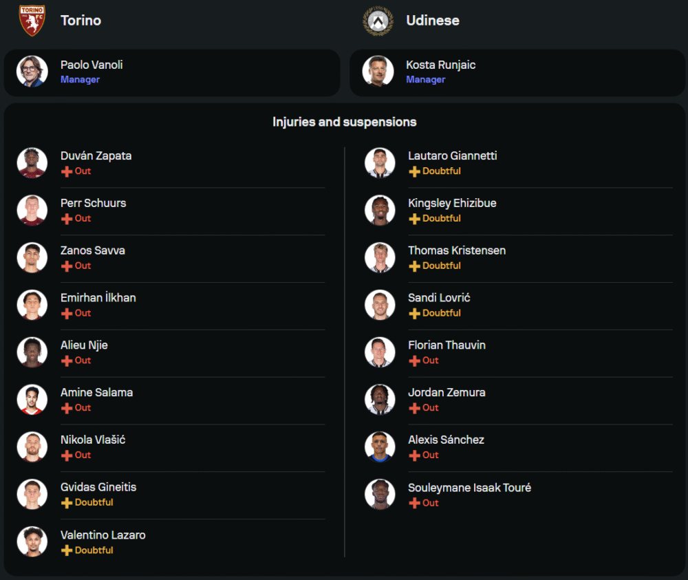 ฝั่ง อูดิเนเซ่ กำลังดิ่งลงเหวแบบไม่มีเบรก แพ้ถึง 4 จาก 5 นัดหลังในลีก เกมรับรั่ว เกมรุกฝืด ยิงได้น้อย เสียประตูเป็นกอบเป็นกำ ฟอร์มเยือนก็ไม่ดีกว่ากันนัก แพ้ 2 จาก 3 เกมหลัง แถมเพิ่งโดน เอซี มิลาน กระซวกไปถึง 4-0 แบบหมดสภาพ