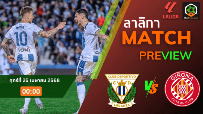คืนวันศุกร์ที่ 25 เมษายน 2568 เวลา 00.00 น. แฟนบอลลาลิกาห้ามกะพริบตา เพราะนี่คือแมตช์แห่งความอยู่รอดของสองทีมในโซนท้ายตาราง เมื่อ เลกาเนส เตรียมเปิดบ้านรับการมาเยือนของ กิโรน่า เอฟซี ซึ่งสถานการณ์ในตารางค่อนข้างสุ่มเสี่ยงทั้งคู่ การพบกันคราวนี้จึงไม่ใช่เกมธรรมดาแน่นอน ใครจะอยู่หรือไปยังไม่มีคำตอบ! บอกเลยว่าต้องเช็ก ตารางบอลวันนี้ ให้ไว เพราะนี่คือหนึ่งในเกมที่มีเดิมพันมากกว่าคะแนนสามแต้ม!