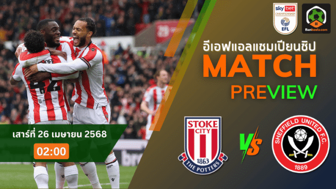 สโต๊ค ซิตี้ ลูกทีมของ มาร์ค โรบิ้นส์ เพิ่งจะเจอฝันร้ายแบบเต็มตา หลังบุกไปโดน ลีดส์ ยูไนเต็ด ถล่ม 6-0 อย่างหมดรูป ถึงกระนั้นหากมองลึกกว่านั้นจะเห็นว่าพวกเขาไม่แพ้มา 5 นัดก่อนหน้านั้น และคว้า 3 ชัยชนะสำคัญมาได้ ทำให้โอกาสอยู่รอดยังสดใส ความพร้อมคืนนี้จะไร้เงา จอร์แดน ธอมพ์สัน, เอ็นด้า สตีเว่นส์ และ อีริก-จูเนียร์ โบก้าต์ ที่ยังเดี้ยงทั้งหมด แผนการเล่นน่าจะมาในระบบ 4-2-3-1 โดยฝากความหวังไว้กับ ซามูเอล กัลลาเกอร์ หอกตัวเป้าที่จะคอยรับบอลจากเพลย์เมกเกอร์ตัวเก่งอย่าง ลูอิส เบเกอร์ เชฟฟิลด์ ยูไนเต็ด ด้านทีมเยือนของกุนซือ คริส วิลเดอร์ ผลงานยังแกว่งไม่หยุด แพ้ถึง 4 จาก 5 นัดหลังสุด แม้จะยังอยู่ในกลุ่มเพลย์ออฟ แต่แนวรับที่เสียถึง 6 ประตูใน 3 นัดหลัง เป็นปัญหาที่ต้องรีบแก้ เกมนี้จะไม่มีชื่อของ แฮร์รี่ ซูตต้าร์, รีส นอร์ริงตัน-เดวี่ส์, และ โอลิเวอร์ อาร์บลาสเตอร์ ที่ยังเจ็บทั้งหมด โดยเกมนี้คาดว่าจะมาในระบบ 4-4-1-1 วาง โธมัส แคนน่อน เป็นหน้าเป้า และให้ เรียน บรูว์สเตอร์ เป็นตัวสร้างสรรค์เกมจากด้านหลังฟอร์มล่าสุดของแต่ละทีม