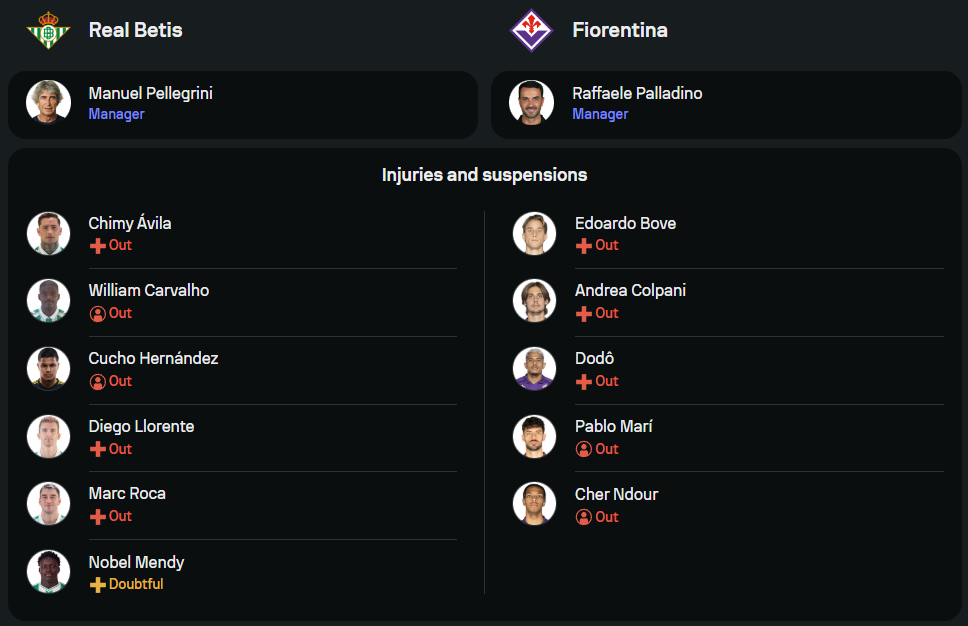 ย้อนดูการพบกันก่อนหน้านี้ในเกมกระชับมิตรมีเพียง 2 ครั้ง โดย เรอัล เบติส ชนะ ฟิออเรนติน่า ได้ 1 นัด และพ่ายไป 1 นัด ซึ่งเกมล่าสุดเมื่อปี 2022 เบติสเอาชนะได้แบบขาดลอย 3-1 แต่เนื่องจากเป็นเพียงแมตช์อุ่นเครื่อง จึงยังไม่สามารถนำมาอ้างอิงได้มากนักในแง่ของ ทีเด็ดบอล และการวัดผลความแข็งแกร่งเชิงแท็คติกภายใต้แรงกดดันของเกมยุโรปจริง