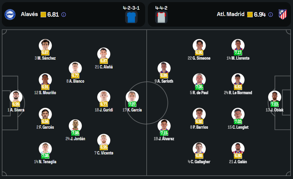 ฝั่ง แอตเลติโก้ มาดริด ภายใต้การคุมทัพของ ดีเอโก้ ซิเมโอเน่ เกมนี้ได้เปรียบหลายด้าน โดยเฉพาะความพร้อมของทีมที่ไร้แข้งเดี้ยงและติดโทษแบน ทำให้สามารถส่ง 11 ตัวจริงชุดแกร่งลงสนามได้เต็มที่ คาดว่าจะมาในระบบ 4-4-2 เช่นเคย โดยมี อเล็กซานเดอร์ ซอร์ล็อธ กับ ฮูเลียน อัลบาเรซ ลงล่าตาข่าย ส่วนแดนกลางใช้ เด ปอล คุมจังหวะเกมร่วมกับ ปาโบล บาร์ริออส ที่เพิ่งโชว์ฟอร์มเด่นในเกมล่าสุด