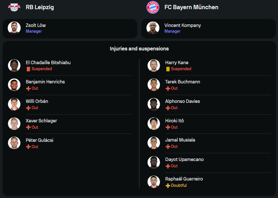 แม้จะไม่มี แฮร์รี่ เคน หัวหอกตัวเก่งที่ติดโทษแบน แต่ข่าวดีคือการกลับมาของ มานูเอล นอยเออร์ ในตำแหน่งผู้รักษาประตูตัวจริง ส่วนแนวรุกไม่มีปัญหา โธมัส มุลเลอร์ พร้อมค้ำหน้าเป้า ขนาบด้วย เลรอย ซาเน่, ไมเคิ่ล โอลิเซ่ และ เซิร์จ นาบรี้ แผงมิดฟิลด์ใช้ โยชัว คิมมิช คุมเกมร่วมกับ กอเร็ตซ์ก้า และแนวรับยังมี คิม มิน-แจ คุมหลังร่วมกับ ดายเออร์ ได้อย่างแน่นหนา