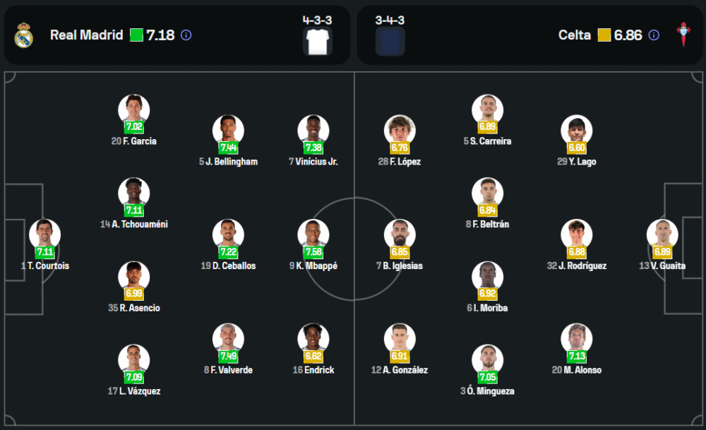ฝั่งผู้มาเยือนจากแคว้นกาลิเซียนำโดยกุนซือ เคลาดิโอ กิรัลเดซ กอนซาเลซ เกมนี้สภาพทีมค่อนข้างพร้อม มีเพียง คาร์ล สตาร์เฟลท์ แนวรับตัวหลักที่ยังเดี้ยง ขณะที่แนวรุกจัดเต็มครบชุด นำโดย เฟร์ โลเปซ, บอร์ฆ่า อิเกลเซียส และ อัลฟอน กอนซาเลซ ที่เพิ่งกดประตูถล่มบียาร์เรอัล 3-0 มาได้หมาดๆ แดนกลางใช้ เบลตราน คุมจังหวะเกมร่วมกับ ดาเมี่ยน โรดริเกซ รูปแบบการเล่นน่าจะมาในแผน 3-4-3 หวังใช้เกมสวนกลับเจาะแนวรับสำรองของราชันให้ได้