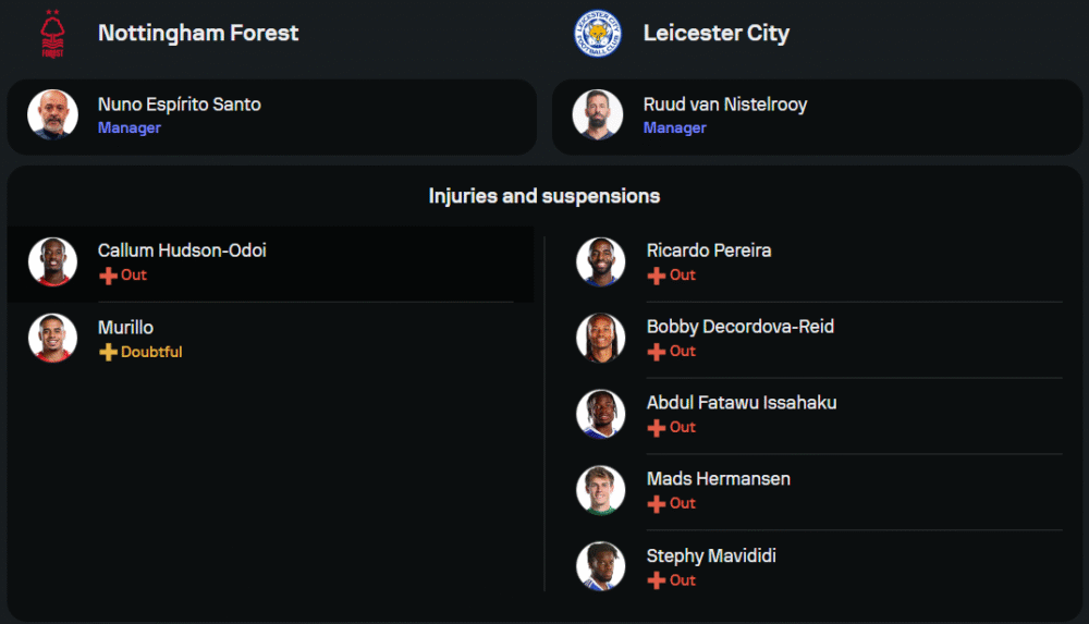 ด้าน “เลสเตอร์” ยังคงหาฟอร์มที่สม่ำเสมอไม่เจอ แม้จะเพิ่งชนะมา แต่ก่อนหน้านั้นพวกเขาไม่ชนะใครถึง 5 นัดติด โดยเฉพาะเกมเยือนที่พวกเขาแพ้ถึง 12 จาก 17 เกม บ่งชี้ชัดเจนว่าเกมนอกบ้านยังคงเป็นจุดอ่อนที่แก้ไม่ตก การเจอกับทีมที่กำลังไล่ล่าความอยู่รอดอย่างฟอเรสต์ อาจเป็นบททดสอบที่หนักหน่วงไม่น้อย