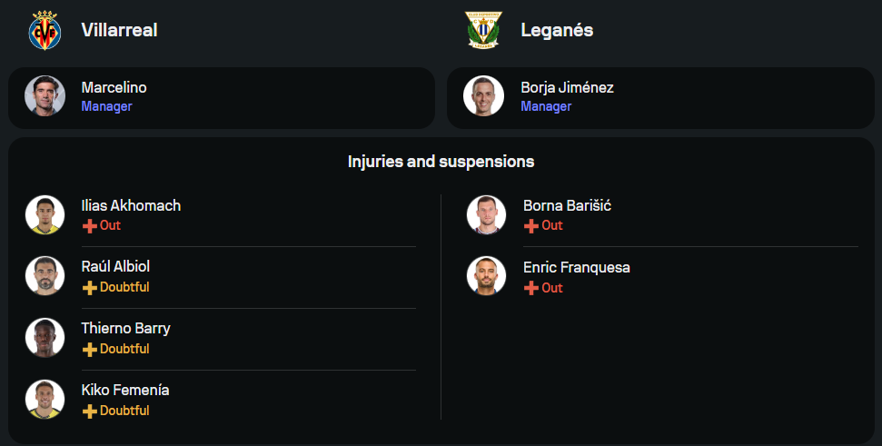 ภายใต้การคุมทีมของ มาร์เซลิโน่ พวกเขากำลังเดินหน้าด้วยความมั่นใจ แม้จะมีปัญหาผู้เล่นบาดเจ็บและต้องรอเช็กฟิตหลายราย อาทิ ราอูล อัลบิโอล, เธียร์โม่ แบร์รี่ และ คิโก้ เฟเมเนีย ขณะที่ ยิอัส อาโกมัช ยังเดี้ยงแน่นอน แต่ข่าวดีคือได้ตัวหลักอย่าง เยเรมี่ ปิโน่ กลับมาจากโทษแบน คาดว่าจะเดินระบบ 4-4-2 ตามถนัด นำโดย อาโยเซ่ เปเรซ, นิโกล่าส์ เปเป้, อเล็กซ์ บาเอน่า และจอมทัพจ่ายบอลอย่าง ดานี่ ปาเรโฆ่