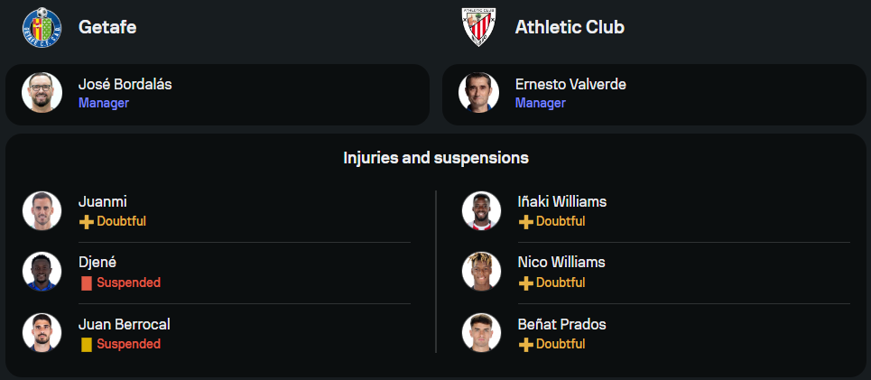 เกตาเฟ่ ภายใต้การคุมทัพของ โฆเซ่ บอร์ดาลาส เจอปัญหาหนักทั้งฟอร์มและสภาพทีม แม้จะได้ คริสตานตุส อูเช่ และ เฌเน่ ดาโกนัม กลับมาจากโทษแบน แต่ก็ยังมีปัญหาในเกมรุกและการปิดบัญชีที่ยังไม่คมพอ โดยเกมนี้จะมาในระบบ 4-4-2 นำทัพโดย บอร์ฆา มาโยรัล ยืนเป็นหัวหอกคู่กับ เบอร์ตู ยิลดริม ส่วนแดนกลางจะมี หลุยส์ มิย่า เป็นตัวเดินเกมหลัก ทั้งนี้ยังคงไม่มี ฆวนมี่ ที่ยังไม่ฟิตกลับมา