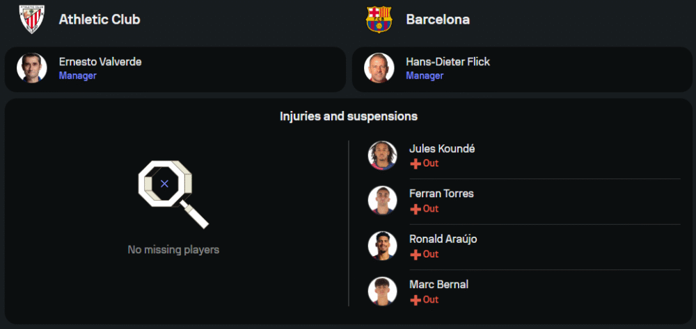เออร์เนสโต้ บัลเบร์เด้ กุนซือเจ้าถิ่นใจชื้นสุดๆ เพราะได้ขุมกำลังหลักกลับมาฟิตเกือบครบ โดยเฉพาะสองพี่น้องวิลเลี่ยมส์ที่พร้อมเป็นตัวจริงแบบเต็มสูบ มีเพียง เยราย ที่เจ็บแต่ไม่มีผลต่อโครงสร้างทีมโดยรวม แดนหน้าพร้อมส่ง กอร์ก้า กูรูเซต้า ล่าตาข่าย ส่วนแดนกลางมีจอมเก๋าอย่าง โออิฮาน ซานเก็ท คุมจังหวะเกมรับ-รุก วางแผนมาในระบบ 4-2-3-1 พร้อมเปิดเกมใส่แบบไม่กลัวศักดิ์ศรี