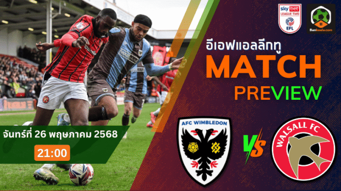 วิเคราะห์บอลวันนี้ศึกเดือดรอบชิงเพลย์ออฟ! วิมเบิลดัน ปะทะ วอลซอลล์ ลุ้นเลื่อนชั้นลีกทู ใครจะแจ้งเกิดที่เวมบลีย์?