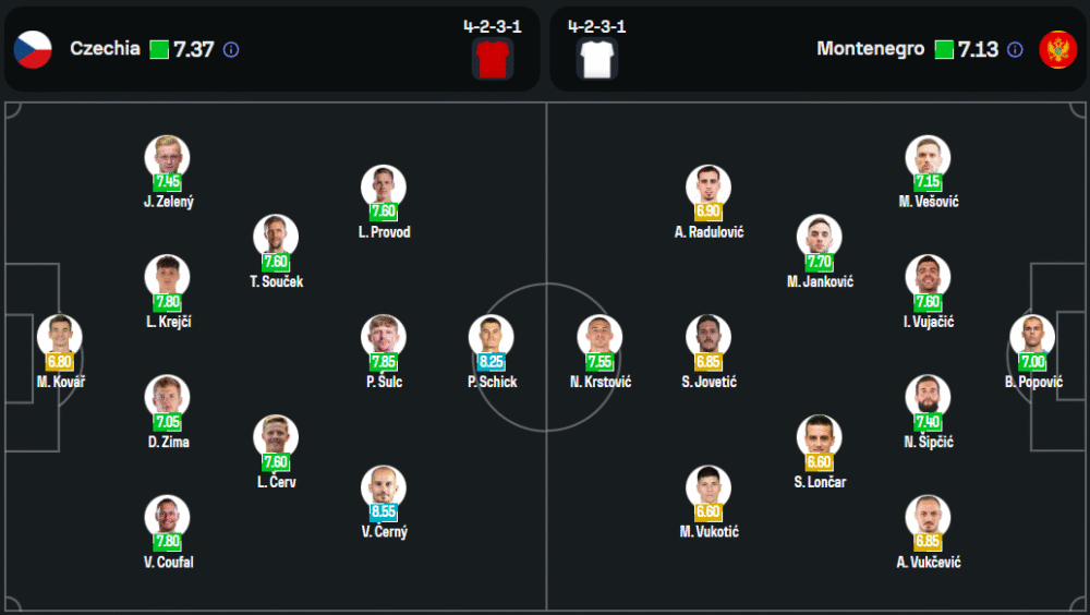 สกอร์ที่คาด: เช็ก ชนะ มอนเตเนโกร 3-1