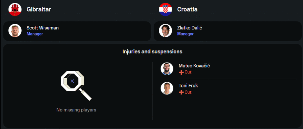 ขุนพล “ตราหมากรุก” ของ ซลัตโก้ ดาลิช อยู่ในอันดับ 3 ของกลุ่มตอนนี้ด้วยสาเหตุเพราะยังไม่ได้ลงสนามในรอบคัดเลือกปีนี้ แต่ขนแข้งชุดใหญ่ลงมาเต็มพิกัด แม้จะไร้ มาเตโอ โควาชิช และโทนี่ ฟรุค ที่บาดเจ็บ แต่ยังนำทัพโดย ลูก้า โมดริช กัปตันจอมเก๋าวัย 39 ปี ที่ยังคุมแดนกลางได้แบบไม่ลดระดับ พร้อมด้วย มาเตโอ โควาชิช, อิวาน เปริซิช, อันเดร ครามาริช และ อันเต้ บูดิเมียร์ เกมนี้เป้าหมายชัดเจนต้องยิงขาดเก็บประตูได้เยอะที่สุดเท่าที่จะทำได้เพื่อประเดิมสนามรอบคัดเลือกนี้ให้สวยงาม