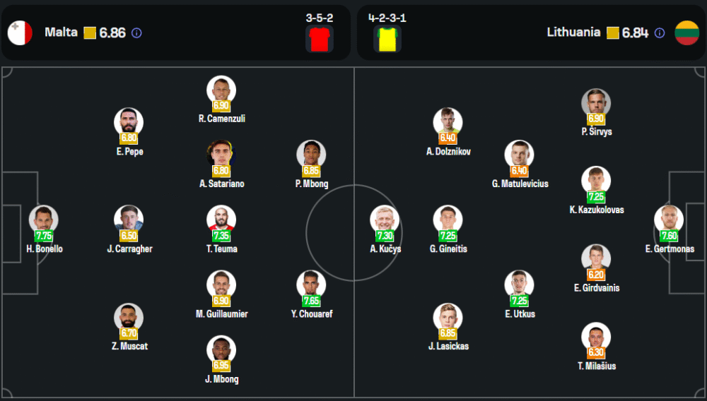 ฝั่ง เอ็ดการาส ยันเคาสคาส เทรนเนอร์ลิธัวเนียก็มีปัญหาไม่แพ้กัน เมื่อสามคีย์แมนทั้ง ไวคินตาส สลิฟก้า, โอวิดิยุส เวอร์บิคคาส และอาร์วีดัส โนวิโควัส หลุดจากโผ อย่างไรก็ดี ระบบทีมที่เหลือก็ยังพอมีของ โดยเฉพาะเกมแดนกลางที่จะนำโดย กวิดาส กิเนติส, อาเธอร์ โดลชนิคอฟ และกีดริอุส มาตุเลวิตซิอุส ปั้นเกมรุกสนับสนุนหัวหอก อาร์มันดาส คูชีส ลงล่าสกอร์ในแผน 4-2-3-1 แม้จะขาดความคมในแดนหน้า แต่ศักยภาพโดยรวมก็ยังดูดีกว่าคู่แข่งเล็กน้อย