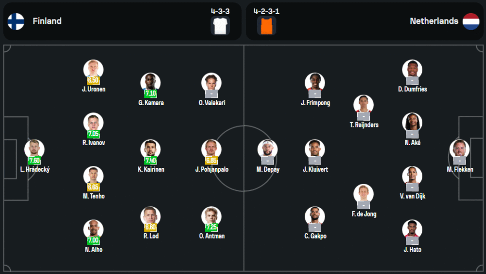 คาด 11 ตัวจริง ฟินแลนด์ (4-3-3) : ลูคัส ฮราเด็คกี้ – นิโคไล อัลโฮ, มิโร เทนโฮ, โรเบิร์ต อิวานอฟ, เยเร่ ยูโรเน่น – โรบิน ล็อด, คาน ไคริเน่น, เกล็น คามาร่า – โอลิเวอร์ อันต์มัน, โยเอล โปห์ยานปาโล, เบนยามิน คัลล์มัน