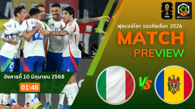 ศึกฟุตบอลโลก 2026 รอบคัดเลือก โซนยุโรป กลุ่ม I เดินทางมาถึงนัดที่ 4 แล้ว และเกมที่น่าจับตามองค่ำคืนนี้ไม่มีคู่ไหนร้อนแรงไปกว่า อิตาลี เปิดสนามต้อนรับการมาเยือนของ มอลโดวา คืนวันอังคารที่ 10 มิถุนายนนี้ เวลา 01:45 น. ตามเวลาประเทศไทย ตามข้อมูลจาก ตารางบอลวันนี้ นี่คือเกมที่อัซซูรี่ต้องเก็บชัยให้ได้ หากไม่อยากเสี่ยงหลุดจากเส้นทางไปฟุตบอลโลกอีกครั้ง ราคาบอลวันนี้เปิดให้ อิตาลี ต่อแพงถึง 2.75 ลูก สะท้อนความห่างชั้นแบบไม่ต้องพูดมาก!