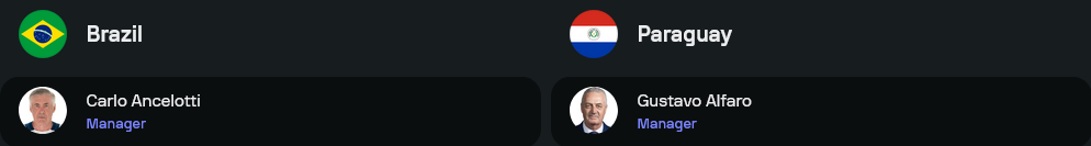 หลังการเข้ามารับงานของ คาร์โล อันเชล็อตติ บราซิลยังหาฟอร์มเก่งไม่เจอ เกมล่าสุดบุกเสมอเอกวาดอร์ 0-0 จนถูกวิจารณ์เรื่องความฝืดในแดนหน้า โดยเกมนี้มีแนวโน้มจะปรับทีมบางตำแหน่ง อันโตนี่ และ มาเธอุส คุนญ่า จากแมนฯ ยูไนเต็ดมีลุ้นได้ออกสตาร์ท แนวรุกยังมี วินิซิอุส จูเนียร์, บรูโน่ กิมาไรส์, และ คาเซมิโร่ ขับเคลื่อนในแดนกลาง ขณะที่แนวรับคงใช้ อลิสซอน, มาร์ควินญอส และ อเล็กซ์ ซานโดร เหมือนเดิม