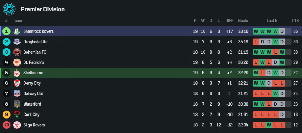 แชมร็อค โรเวอร์ส ของกุนซือ สตีเฟน แบรดลีย์ เดินเครื่องฟอร์มแรงต่อเนื่อง 8 นัดไร้พ่ายในลีก เกมนี้ได้ข่าวดีเมื่อ แดน เคลียรี เซ็นเตอร์แบ็กตัวหลักพ้นโทษแบนกลับมาช่วยทีมได้ทันเวลา โดยระบบยังคงเป็น 5-3-2 เช่นเดิม แดนกลางวาง แอรอน แม็กเอเน็ฟฟ์, แมตตี้ ฮีลี่ย์ และ แจ็ค เบิร์น คุมเกม ขณะที่คู่หน้าจะเป็นหน้าที่ของ ไมเคิ่ล นูนัน กับ เกรแฮม เบิร์ก ที่กำลังเข้าขารู้ใจแบบสุด ๆ
