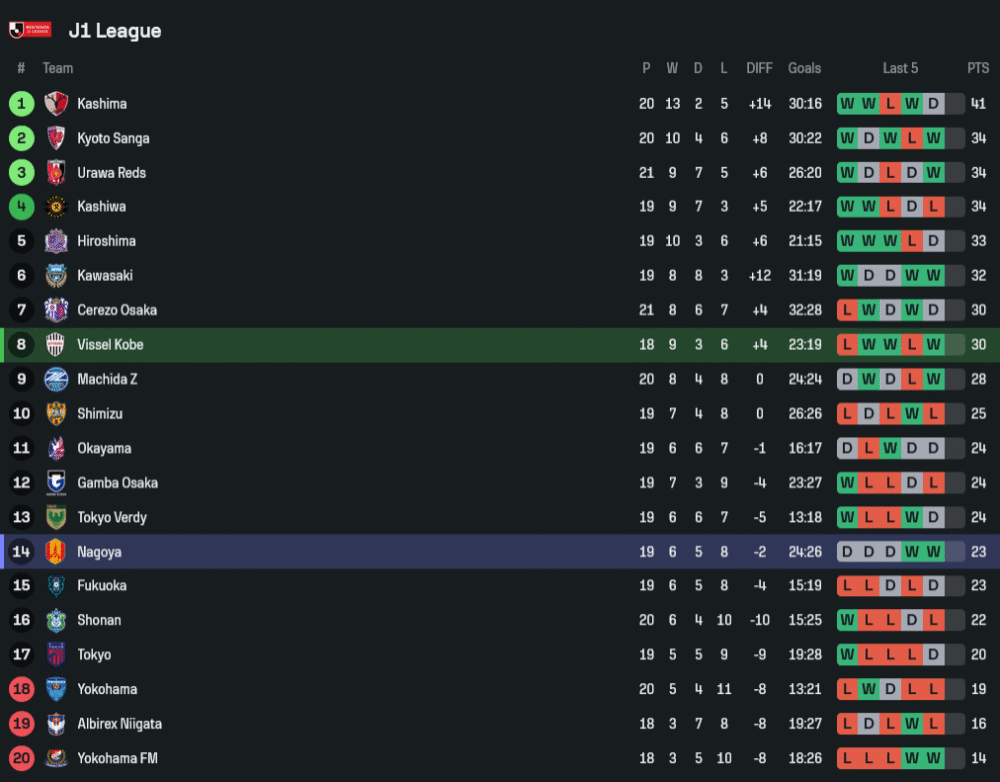 นาโงย่ากำลังคึกคักไม่แพ้กัน พวกเขาชนะ 3 เกมติด ยิงรวมกัน 8 ประตู และเสียเพียงลูกเดียวเท่านั้นในช่วง 3 นัดหลัง ฟอร์มในบ้านร้อนแรง แต่ออกนอกถิ่นยังค่อนข้างเปราะ โดยชนะได้แค่ 1 จาก 10 เกมเยือนหลังสุดในลีก เสมอ 3 และแพ้ถึง 6 นัด ทำให้เกมนี้แม้จะมั่นใจจากฟอร์มช่วงหลัง แต่เรื่องเกมเยือนยังคงต้องลุ้นหนัก