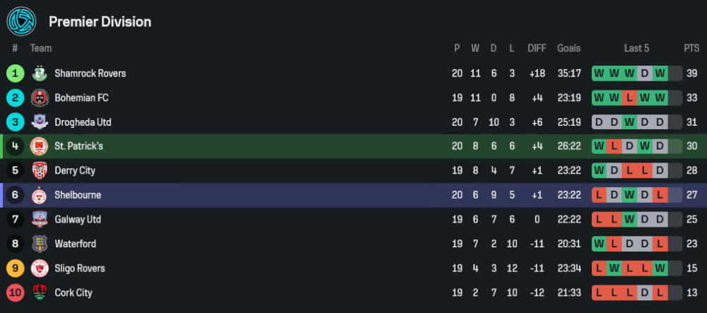 เซนต์ แพทริคส์ ไม่มีปัญหาใหญ่ให้ต้องปวดหัวเพิ่มเติม นอกจากการขาดหายไปของ โรแมน พัลเมอร์ จอมทัพวัย 26 ปี ที่ยังคงเจ็บแฮมสตริงอยู่ แต่แข้งหลักรายอื่นยังอยู่กันพร้อมหน้า โดยเฉพาะ เมสัน เมเลีย ดาวรุ่งวัยเพียง 17 ปี ที่ระเบิดฟอร์มกดไปแล้ว 6 ประตูในซีซั่นนี้ และจะออกสตาร์ทเป็นตัวเป้าแน่นอน ขณะที่แดนกลางใช้ เคียน เลียวี่ เป็นตัวเชื่อมเกมตามแผน 4-5-1 ที่ถนัด