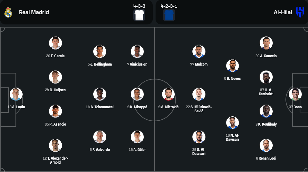 อัล ฮิลาล ฟอร์มไม่ธรรมดาเช่นกัน พวกเขาชนะ 4 จาก 5 เกมหลังสุดในลีกซาอุฯ ยิงรวมกันถึง 19 ประตู แถมไม่แพ้ใครเลย ความอันตรายของพวกเขาอยู่ที่เกมรุกซึ่งมีนักเตะหลายคนที่สามารถสร้างสรรค์โอกาสได้ ทั้งจากกลางสนามและริมเส้น อย่างไรก็ตาม การเจอกับทีมระดับเรอัล มาดริด นั้นต่างจากเกมลีกโดยสิ้นเชิง