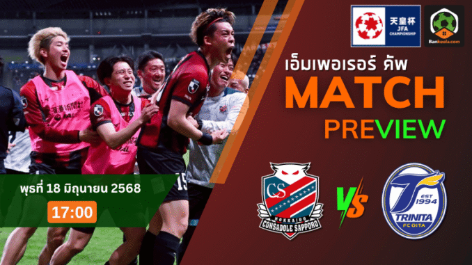 ค่ำวันพุธที่ 18 มิถุนายน 2568 แฟนบอลแดนปลาดิบมีคิวลุ้นกันอีกรอบ กับเกมฟุตบอล เอ็มเพอเรอร์ คัพ รอบสุดเข้มข้นที่รอการระเบิดอารมณ์! เมื่อ คอนซาโดล ซัปโปโร เตรียมลงสนามเปิดรัง ไดวะ เฮ้าส์ พรีมิสต์ โดม ปะทะ โออิตะ ตรินิตะ เพื่อนร่วมลีกจาก เจลีก ทู ที่ฟอร์มกำลังมาแรงไม่แพ้กัน เกมนี้ถูกวางเป็นคู่ที่สูสีไม่ต่างจากเหยียบขอบมีด เพราะเจ้าถิ่นต่อเพียง 0.25 (-10) เท่านั้น และหากมองจากภาพรวมของ ตารางบอลวันนี้ แล้ว ไม่มีข้อสงสัยใดว่าเกมนี้มีโอกาสออกได้ทุกหน้า!