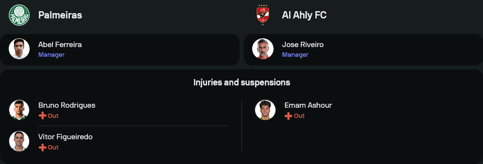 พัลไมรัส ของกุนซือจอมวางหมาก อาเบล เฟร์ไรร่า พาทีมลงสนามนัดแรกด้วยผลเสมอ ปอร์โต้ 0-0 ชนิดที่น่าชนะใจจะขาด แต่วันนี้จะหมดสิทธิ์ใช้งาน บรูโน่ โรดริเกซ และ วิตอร์ ฟิเกเรโด้ สองแข้งสำคัญที่มีอาการบาดเจ็บ โดยไฮไลต์อยู่ที่การนำทัพของ ริชาร์ด ริออส ห้องเครื่องสายโหด, เมาริซิโอ ผู้คุมจังหวะ และ วิตอร์ โรเก้ หอกดาวรุ่งสายพลังที่พร้อมล่าตาข่ายเต็มพิกัดในแผน 3-4-2-1