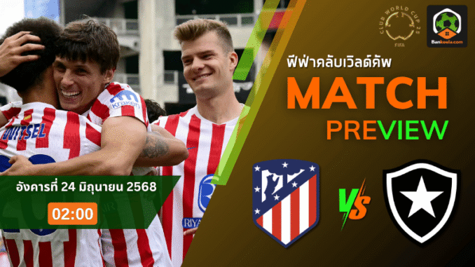 เกมตัดสินชะตาในศึก ฟีฟ่าคลับเวิลด์คัพ 2025 กลุ่มบี คืนวันอังคารที่ 24 มิถุนายนนี้ เวลา 02:00 น. ตามเวลาประเทศไทย เตรียมระเบิดความมันส์ที่สนาม โรส โบว์ล กับการพบกันระหว่าง แอตเลติโก้ มาดริด ตัวแทนจากสเปน ที่ต้องเอาชนะสถานเดียว หากหวังเข้าสู่รอบต่อไป ดวลเดือดกับจ่าฝูงอย่าง โบตาโฟโก้ จากบราซิล ที่เก็บ 6 แต้มเต็มจาก 2 นัด พร้อมราคาบอลวันนี้เปิดให้ทีมตราหมีเป็นฝ่ายต่อที่ “ครึ่งควบลูก” แม้จะดูสูสี แต่เกมนี้เดิมพันสูงสุดในตารางคะแนน ซึ่งแฟนบอลที่กำลังตามเช็ค ตารางบอลวันนี้ ไม่มีเหตุผลใดให้พลาดการดวลเดือดคู่นี้แม้แต่วินาทีเดียว!