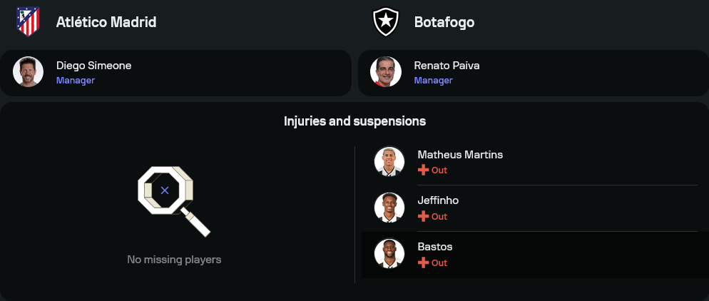 ฝั่ง โบตาโฟโก้ ของ เรนาโต้ ปาอิวา ฟอร์มสุดร้อนแรงกว่าทุกทีมในกลุ่ม ชนะรวดสองนัดและยังไม่เสียแต้มให้ใคร ล่าสุดเชือดแชมป์ยุโรปอย่าง เปแอสเช ไปแบบสุดช็อก 1-0 ความมั่นใจมาเต็ม สภาพทีมไม่มีปัญหาเพิ่มเติม ตัวหลักพร้อมบู๊ครบครัน โดยแนวรุกสามประสานยังคงใช้ อาร์ตูร์, อิกอร์ เชซุส และ เจฟแฟร์ซอน ซาวาริโน่ ลงล่าตาข่ายแบบไม่ปรานีใคร พร้อมมี มาร์ลอน เฟรตาส คอยควบคุมเกมแดนกลาง และแผงหลังที่แข็งแกร่งสุดๆ นำโดย อเล็กซ์ เตลเลส และ อเล็กซานเดอร์ บาร์โบซ่า