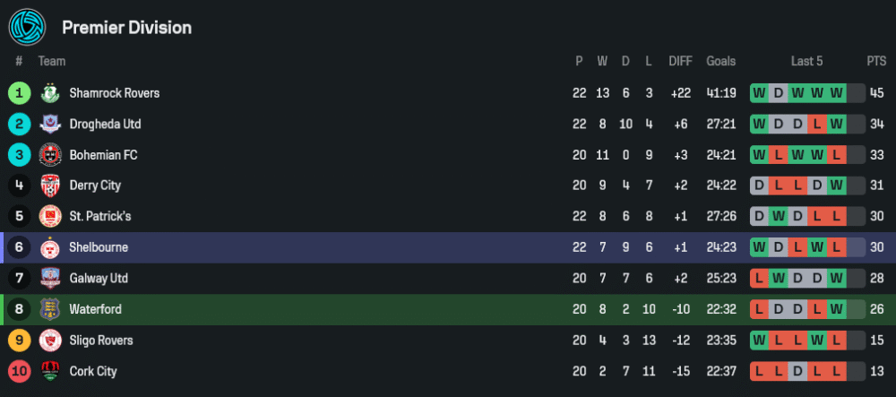 ฟุตบอล พรีเมียร์ลีก ไอร์แลนด์ คืนวันอังคารที่ 24 มิถุนายน 2568 เวลา 01:45 น. คู่ที่แฟนบอลชาวไอริชห้ามกะพริบตาเมื่อ วอเตอร์ฟอร์ด ยูไนเต็ด ทีมอันดับ 8 ของตาราง เตรียมเปิดสนาม วอเตอร์ฟอร์ด เรจิโอนัล สปอร์ต เซ็นเตอร์ ต้อนรับการมาเยือนของ เชลบอร์น ทีมอันดับ 6 ที่กำลังต้องการแต้มเพื่อไล่จี้พื้นที่ยุโรป เกมนี้ถือว่าเป็นหนึ่งในแมตช์ที่สูสีสุดๆ ของรอบนี้ และราคาบอลวันนี้เปิดมาที่ เสมอ แบบไม่มีใครเหนือกว่ากัน นี่คือเกมที่ทั้งสองทีมต่างหมายมั่นปั้นมือจะคว้าสามแต้ม และหากคุณกำลังไล่เช็ก ตารางบอลวันนี้ นี่คืออีกหนึ่งคู่ที่น่าลงทุนทั้งในสนามและหน้าจอ