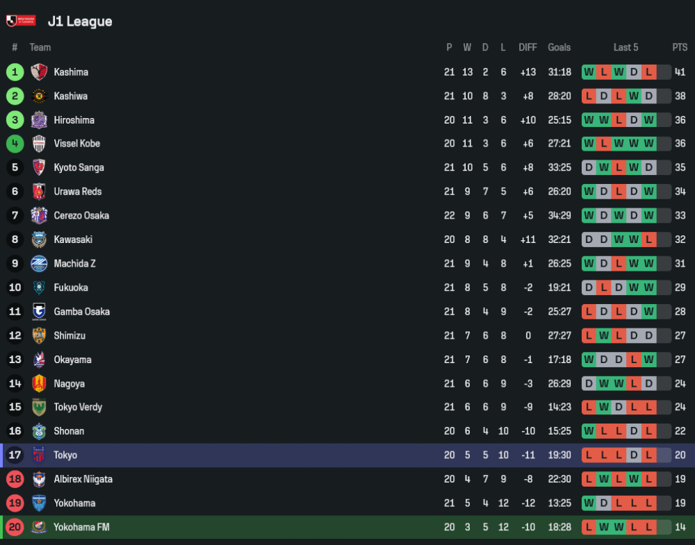 หลังจากคว้าชัยสองเกมติดเมื่อปลายเดือนพฤษภาคม ฟอร์มของพวกเขาก็ร่วงหนัก พ่ายรวด 3 เกมหลัง โดยยิงประตูไม่ได้แม้แต่ลูกเดียว เกมล่าสุดแพ้ ฟาเจียโน่ โอกายาม่า คารัง 0-1 และก่อนหน้านั้นโดนทีมรองบ่อนอย่าง เรนเมียร์ อาโอโมริ เขี่ยตกรอบบอลถ้วยแบบช็อกแฟนบอล สะท้อนถึงปัญหาหนักทั้งในเกมรุกและเกมรับ