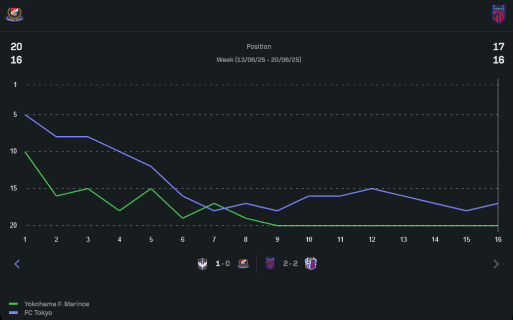 ฟุตบอล เจลีก 2025 คืนวันพุธที่ 25 มิถุนายนนี้ เวลา 17:30 น. สนามนิสสัน สเตเดี้ยม จะลุกเป็นไฟเมื่อสองทีมที่สถานการณ์ไม่สู้ดีนักต้องโคจรมาเจอกันในเกมสำคัญเพื่อความอยู่รอด โดยเจ้าบ้าน โยโกฮาม่า เอฟ มารินอส ทีมบ๊วยอันดับ 20 ต้องเปิดบ้านรับมือ เอฟซี โตเกียว ที่จ่อท้ายในอันดับ 17 โดยทั้งคู่มีแต้มเบียดกันในโซนตกชั้น เกมนี้จึงมีความหมายไม่ต่างจากนัดชิงดำของทั้งสองทีม ขณะที่เรต ราคาบอลวันนี้ เปิดมาให้ มารินอส ต่ออยู่ 0.25 ลูก ซึ่งแสดงให้เห็นว่าเกมนี้สูสีและพร้อมพลิกได้ทุกมุม