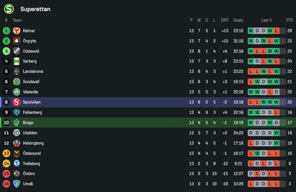 ถือว่าอยู่ในช่วงทรงตัวแต่ยังพอหวังผลได้ 5 นัดหลังสุดในลีกไม่แพ้ใคร ชนะ 2 เสมอ 3 แถมยังมีฟอร์มยิงประตูได้สม่ำเสมอ เกมล่าสุดบุกแบ่งแต้มวาสเตราสแบบมีลุ้นถึงชนะด้วยสกอร์ 2-2 จุดเด่นอยู่ที่เกมรุกที่ยิงได้ถึง 10 ลูกใน 5 นัดหลัง แม้แนวรับจะยังรั่วแต่ก็พอสู้ได้ทุกทีมในลีก