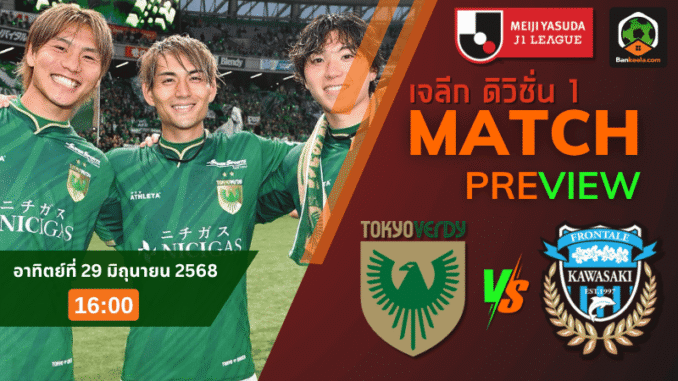 แมตช์เดือดของศึก เจลีก ดิวิชัน 1 ญี่ปุ่น ประจำวันอาทิตย์ที่ 29 มิถุนายน 2568 เวลา 16:00 น. จะระเบิดขึ้นที่ อายิโนะโมโต๊ะ สเตเดี้ยม เมื่อ โตเกียว เวอร์ดี้ ที่กำลังดิ้นรนเอาตัวรอด เปิดรังรับการมาเยือนของยักษ์ใหญ่ร่วมแถบคันโตอย่าง คาวาซากิ ฟรอนตาเล่ ที่กำลังขยับแรงขึ้นมาเรื่อย ๆ โดยเรตราคาในวันนี้เปิดออกมาแบบวัดใจคือ คาวาซากิ ฟรอนตาเล่ ต่อครึ่งลูก (-5) ซึ่งเป็นเรตที่สะท้อนศักยภาพในตอนนี้อย่างชัดเจน แฟนบอลที่กำลังไล่เช็ก ตารางบอลวันนี้ ต้องห้ามพลาดศึกนี้เด็ดขาด เพราะนอกจากจะเป็นศึกแห่งศักดิ์ศรี ยังอัดแน่นด้วยความหมายของคะแนนทั้งสองฝั่ง