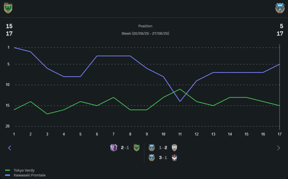 ย้อนดูสถิติแล้วต้องบอกว่าเจอกันทีไรคู่นี้มันส์ทุกครั้ง โดยเฉพาะเกมสุดมันเมื่อปลายปีที่แล้วที่จบด้วยสกอร์ 4-5 แบบไม่ไว้หน้า อย่างไรก็ตามหากมองภาพรวมในช่วงหลัง คาวาซากิ ฟรอนตาเล่ ถือไพ่เหนือกว่าเล็กน้อย ทั้งในเรื่องของการเล่นเป็นทีมและศักยภาพนักเตะ แม้ ทีเด็ดบอล จะชี้ว่าเจอกัน 3 นัดหลังยังเสมอกันถึง 2 ครั้ง แต่หากเทียบช่วงจังหวะฟอร์มล่าสุดแล้ว ทีมเยือนดูเฉียบคมกว่าพอสมควร