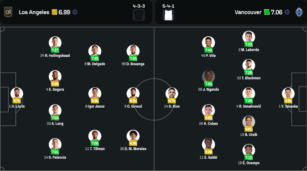 ลอส แองเจลิส เอฟซี ภายใต้การคุมทัพของ สตีเว่น เชรุนโดโล่ ยังไม่เจอปัญหาใหญ่เรื่องอาการบาดเจ็บเพิ่มเติมจากเกมที่เสมอกับ ฟลาเมงโก้ ทำให้แกนหลักยังคงอยู่กันครบ โดยมีชื่อของ อูโก้ โยริส นายทวารจอมเก๋าลงเฝ้าเสาต่อเนื่อง คู่เซ็นเตอร์เป็น อารอน ลอง กับ เ็ดดี้ เซกูร่า ส่วนแผงมิดฟิลด์มี อิกอร์ เชซุส คุมจังหวะร่วมกับ ทิม ทิลมันน์ และ มาร์โก เดลกาโด้ โดยแนวรุกส่งสามประสาน เดนิส บูอังก้า, เดวิด โมราเลส และ โอลิวิเย่ร์ ชิรูด์ หอกตัวเก๋าคอยจบสกอร์