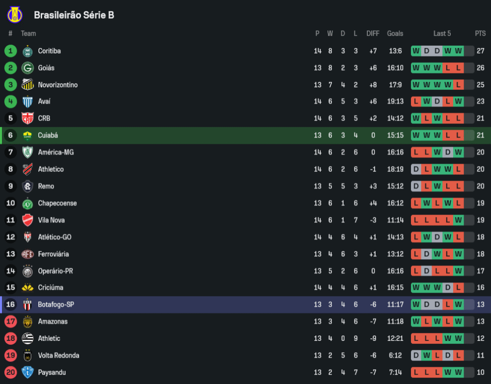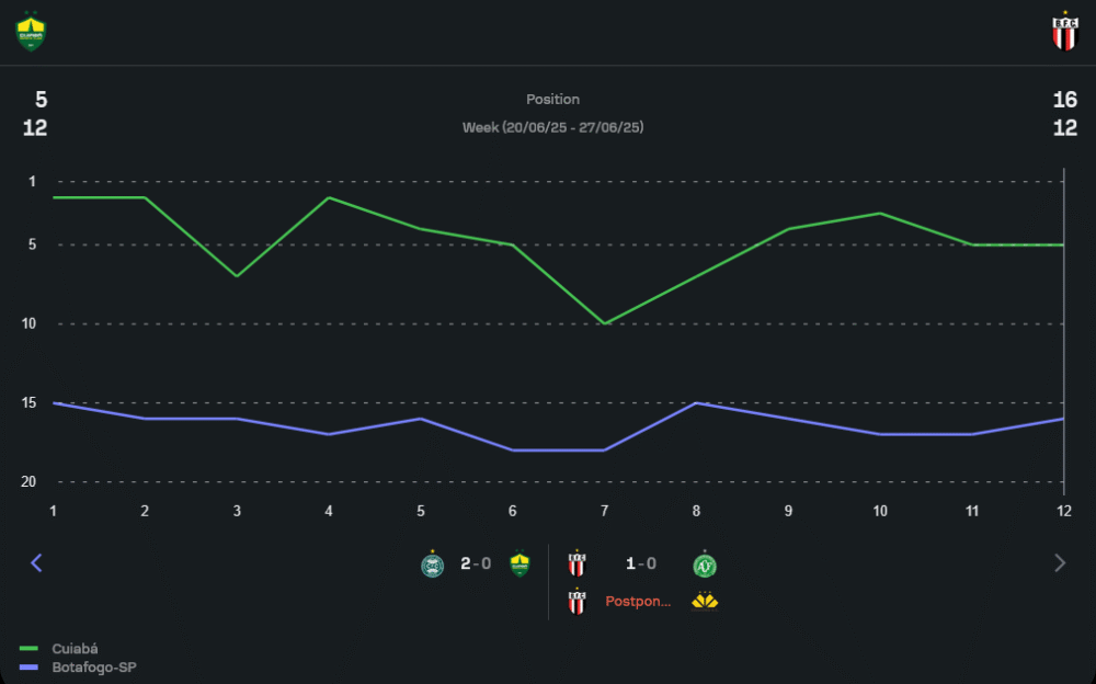 เปิดหัวเช้าวันอังคารที่ 1 กรกฎาคม 2568 ด้วยศึก คัมปิโอนาโต บราซิเลียโร ซีรีบี คู่ที่น่าจับตาสุดๆ เมื่อ คูยาบา ทีมอันดับ 6 ของตาราง เตรียมเปิดสนาม อารีน่า พานตานัล ต้อนรับการมาเยือนของ โบตาโฟโก้ เอสพี ทีมที่กำลังดิ้นรนหนีโซนอันตรายแบบสุดขีด โดยเกมนี้จะฟาดแข้งกันในเวลา 07:00 น. ตามเวลาประเทศไทย และจากเรตราคาล่าสุด คูยาบา ต่ออยู่ที่ 0.75 สื่อถึงความมั่นใจจากเจ้าบ้านที่หวังปิดบัญชีเกมนี้ให้จบตั้งแต่ต้นเกม สำหรับแฟนบอลที่ตามลุ้น ตารางบอลวันนี้ คู่นี้ห้ามกะพริบตา