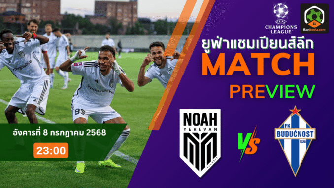 ค่ำคืนนี้ 8 กรกฎาคม 2568 เวลา 23:00 น. ศึกยูฟ่าแชมเปียนส์ลีก รอบคัดเลือก รอบแรก เลกแรก ระหว่าง โนอาห์ จากอาร์มีเนีย เปิดรัง โคตาอิค สเตเดี้ยม ดวลเดือดกับ บูดัคนอสต์ ตัวแทนจากมอนเตเนโกร เริ่มระอุเมื่อราคาต่อรองขยับให้เจ้าบ้านโนอาห์เป็นฝ่ายต่อ 1.25 ลูกแบบเน้นๆ งานนี้แฟนบอลที่กำลังจดตารางบนโพยต้องจับตามอง เพราะนี่คืออีกแมตช์สำคัญของ ตารางบอลวันนี้ ที่สัญญาความมันแบบไม่กั๊ก ทั้งสองทีมต่างหวังทำผลงานเพื่อความได้เปรียบก่อนไปชี้ชะตาเลกสอง เกมนี้ดุดันแน่